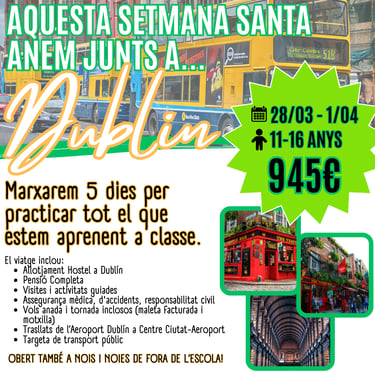 Viatjar al país on es parla l'idioma que estudies sempre t'aporta un plus molt valuós en el teu aprenentatge. Allà pots entendre la cultura del país, guanyar fluïdesa en la teva comunicació oral, conèixer gent nova i gaudir d'una experiència que mai oblidaràs. Des de la nostra escola, t'oferim un munt d’opcions perquè triïs la millor per a tu: